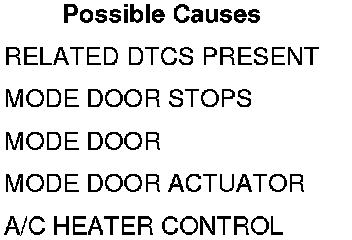 • Remove the Mode Door Actuator and check the Mode Door stops, linkage (stripped or cracked) and door.