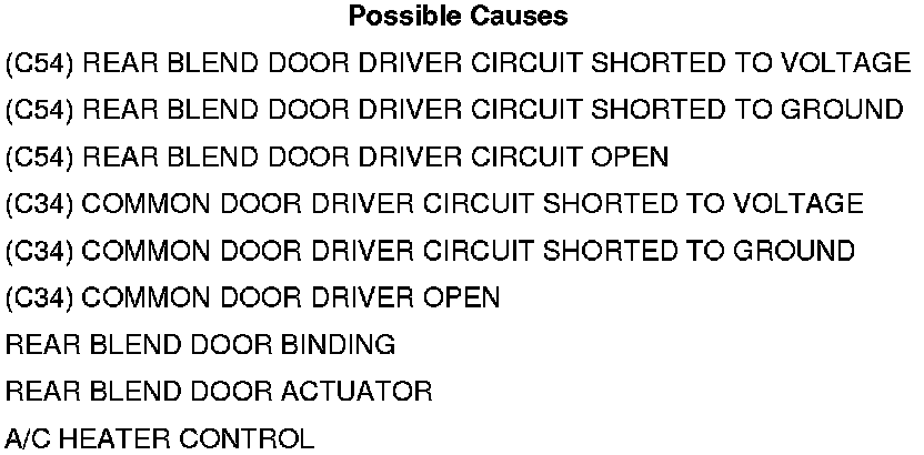 • Repair the (C54) Rear Blend Door Driver circuit for a short to ground.