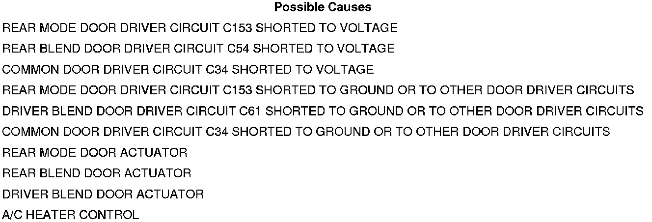 • Set Condition: If the A/C heater control detects a short on the rear mode door driver circuit, the rear blend door driver circuit, or the rear common door driver circuit while attempting to drive the rear mode door actuator or the rear blend door actuator