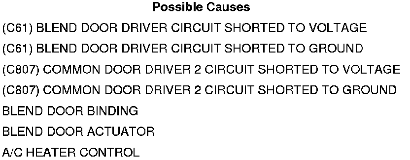 • Repair the (C61) Blend Door Driver circuit for a short to voltage.