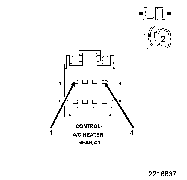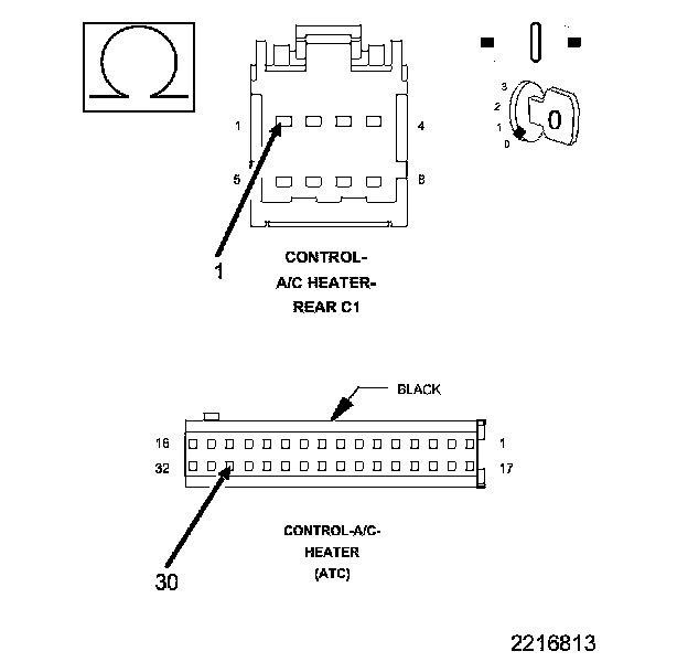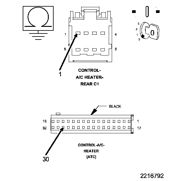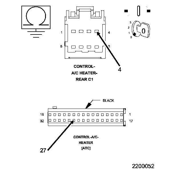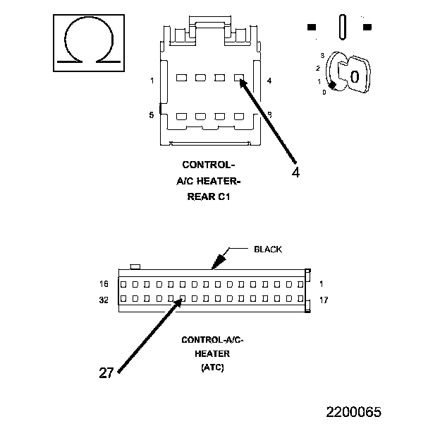 • Check the Rear A/C Heater Control and harness connector for pushed out, damaged, corroded pins or terminals.