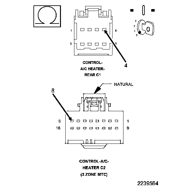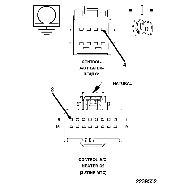 • Check the Rear A/C Heater Control and harness connectors for pushed out, damaged, corroded pins or terminals.