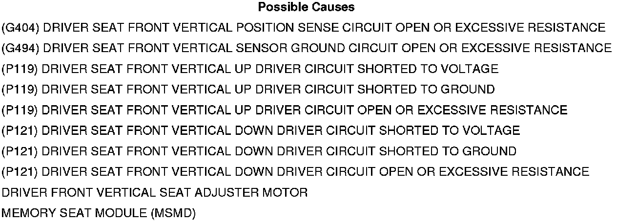 • Repair the short to ground in the (P119) Driver Seat Front Vertical Up Driver circuit.
