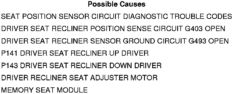 • Repair the driver seat recliner position sense circuit for an open.
