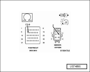 • Using the wiring diagram/schematic as a guide, inspect the wiring and connectors between the 1/2 oxygen sensor and the PCM.