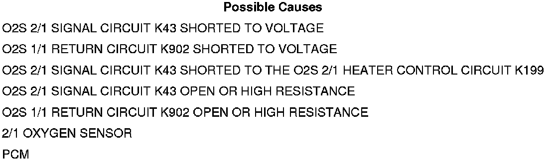 Test Step 2 - O2S 2/1 Signal Circuit Shorted to Voltage