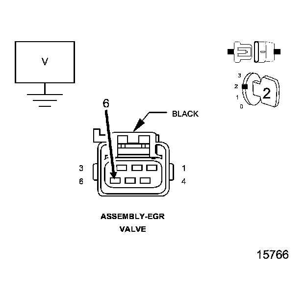 • Using a test lamp connected to the 12 volts, check the ground circuit in the EGR valve assembly harness connector.