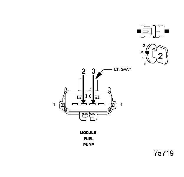 • Connect a jumper wire between the fuel level signal 1 and the sensor ground circuit in the fuel pump module harness connector.