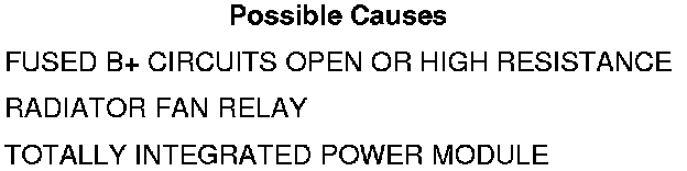 • Using a test lamp connected to ground, check the fused B+ circuits in the radiator fan low speed relay connector.