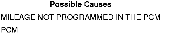 • Set Condition: The vehicle mileage is not programed into the PCM. One trip fault. Three good trips to turn off the MIL.