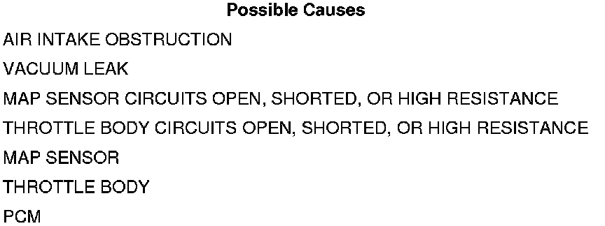 • Set Condition: The PCM detects that the calculated MAP value is greater than actual MAP plus an offset value. One trip fault will set within 5 seconds. ETC light will flash.