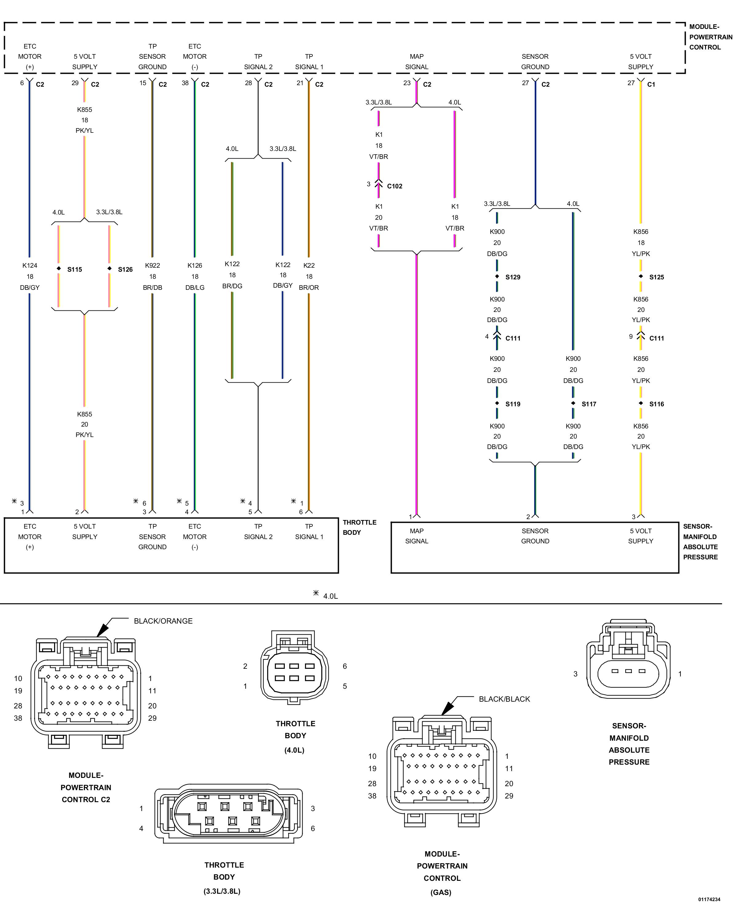 • Using the wiring diagram/schematic as a guide, inspect the wiring and connectors between the MAP sensor and the PCM and between the throttle body and the PCM.