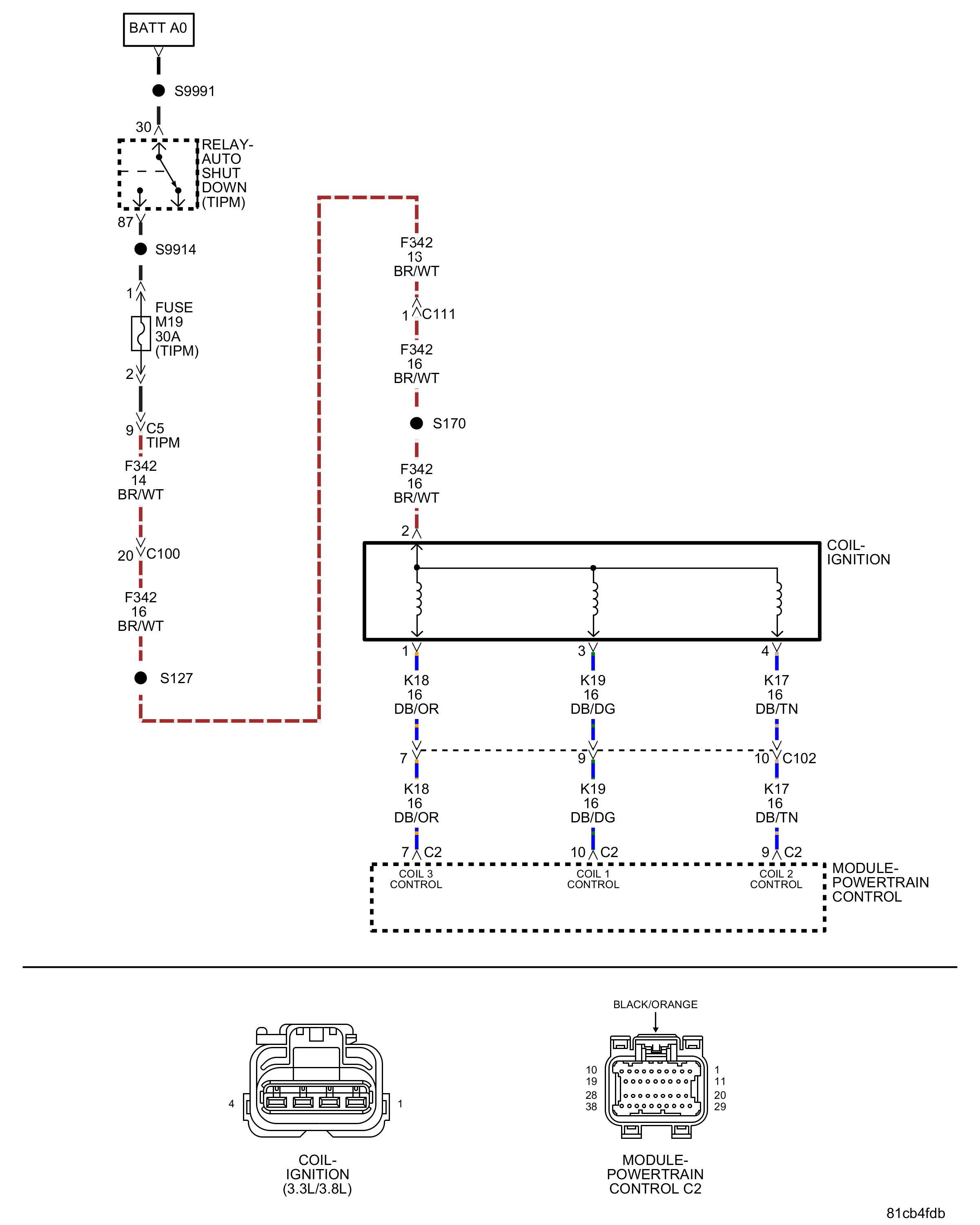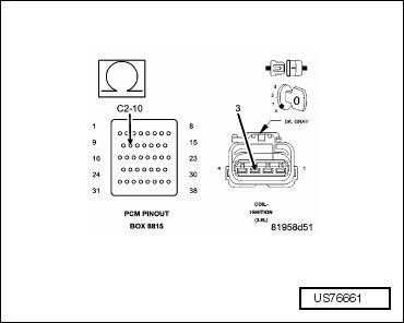 • Using the wiring diagram/schematic as a guide, inspect the wiring and connectors between the ignition coil and the PCM.