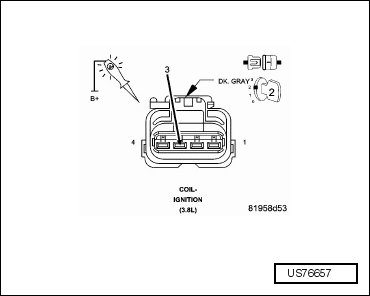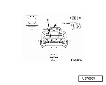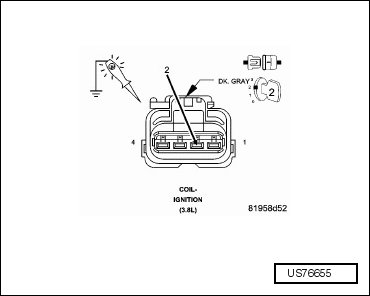 • Measure the resistance between ground and the coil 1 control circuit in the ignition coil harness connector.