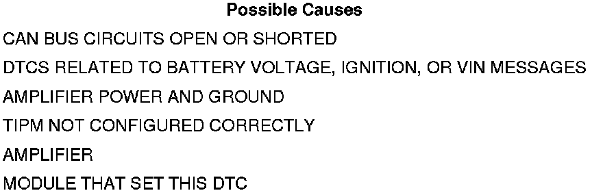 • Set Condition: Bus messages not received from the Audio Amplifier for approximately two to five seconds.