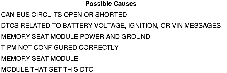 • Set Condition: Bus messages not received from the Memory Seat Module for approximately two to five seconds.