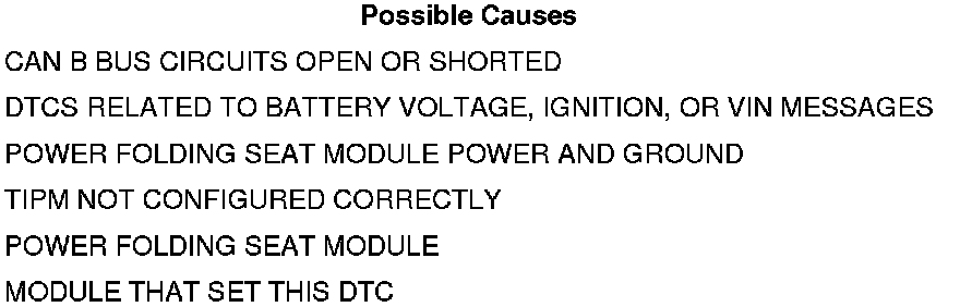 • Set Condition: Bus messages not received from the Power Folding Seat Module for approximately two to five seconds.