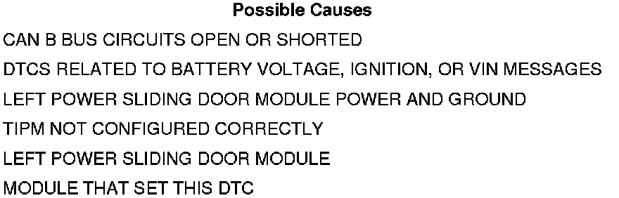 • Set Condition: Bus messages not received from the Left Power Sliding Door Module for approximately two to five seconds.
