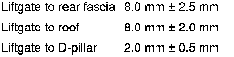 - Verify liftgate alignment. The liftgate should have the specified gap to the adjacent panels and fit flush across the gaps.