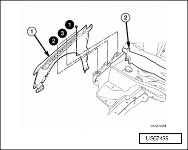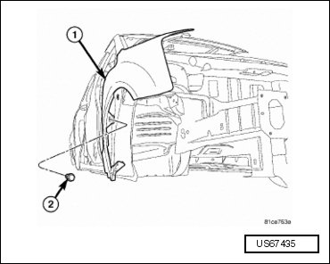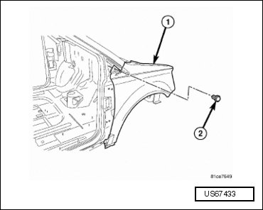 - Install the midpoint fender bolt (2) to the body and tighten to 12.5 Nm (9 ft lbs).