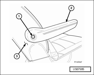 - Remove the bolt (1) and washer that secure the armrest (2) to the seat back (3).