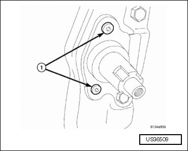 - Position each armrest rotating mechanism onto the seat back frame and install the bolts (1). Tighten the bolts to 10 Nm (88 in lbs).