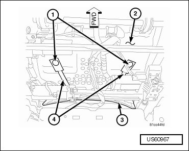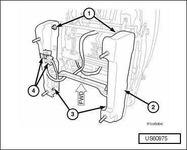 - Install the heated seat module (4) onto the bottom of the seat cushion frame, if equipped.