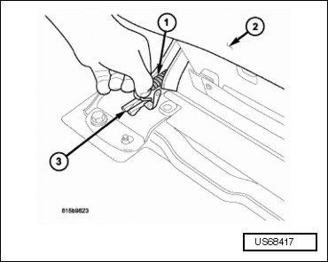 - Remove the rear seat to floor carpet cover by disengaging the clips, starting from the inboard clip and working towards the outboard clip.