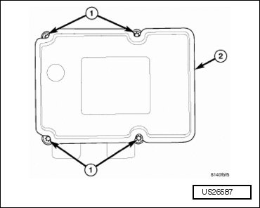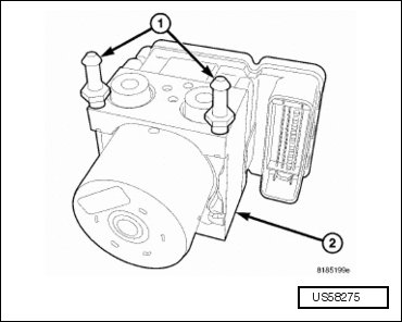 - Install the four screws (1) attaching the ABM (2) to the HCU. Tighten the mounting screws to 2 Nm (17 in. lbs.).