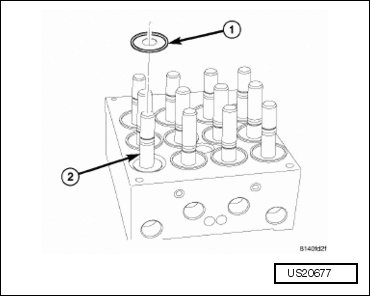 - If the seals (1) on the solenoid valve stems (2) are not new, replace them all. Each of the solenoid valve stem seals must be new to keep out moisture and debris; do not reuse solenoid valve stem seals.