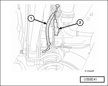 - Remove wheel speed sensor (1) from routing clips along underbody of vehicle.