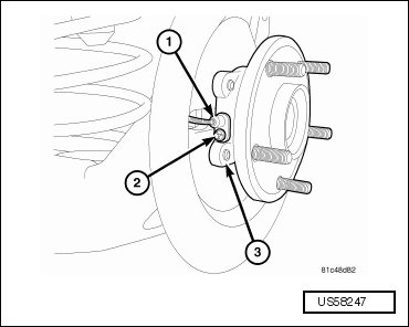 - Push wheel speed sensor head (1) into mounting hole in hub and bearing (3) and align mounting screw hole.