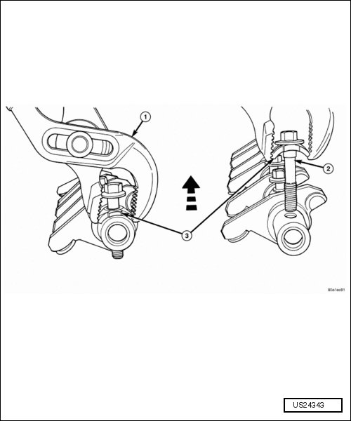 - Remove the rocker arm retainer (3) and bolt (2) by performing the following procedure: