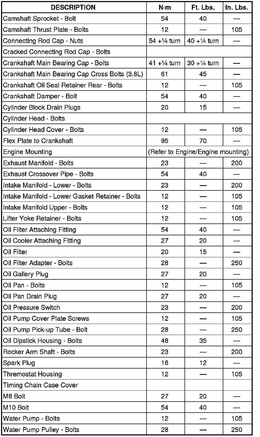 Complete Engine Specifications
