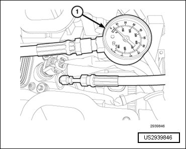 - Install Oil Pressure Gauge (1) to the oil pressure port. Tighten to 20 Nm (177 in. lbs.).