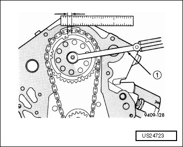 - Position a scale next to the timing chain so that any movement of the chain may be measured.