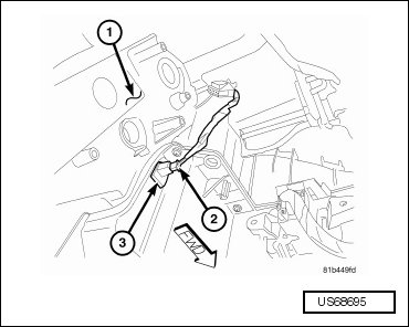 - Install the evaporator temperature sensor (3) into the opening in the side of the front HVAC housing (1).