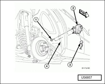 - Remove mounting nuts (1), then remove the Tire Pressure Module (2) from body seam flange (4).