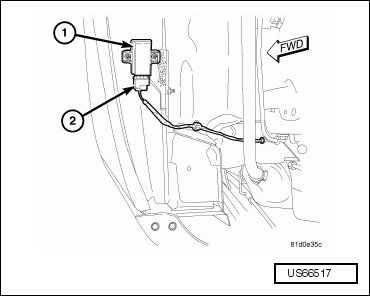 - Disconnect the wiring harness connector (2) at the transponder (1).