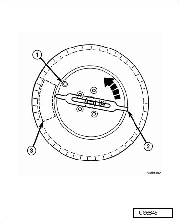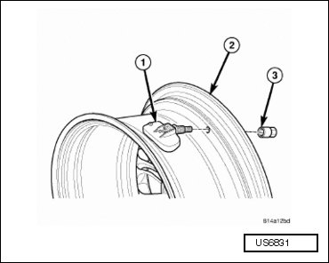 - Remove sensor (1) from wheel (2).