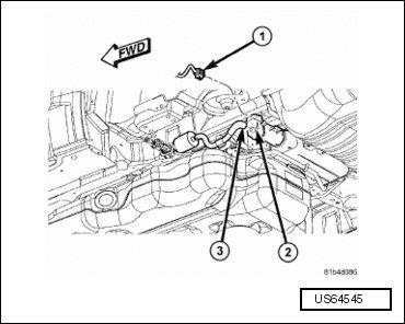 - Disconnect EVAP canister quick connect fitting (3) from the fuel tank control valve.