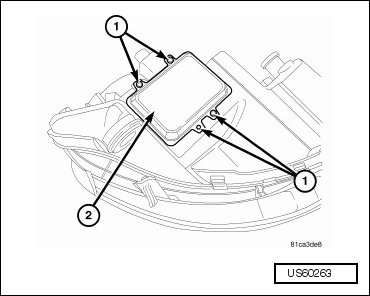 - Install the screws (1) securing the ballast module to the headlamp.