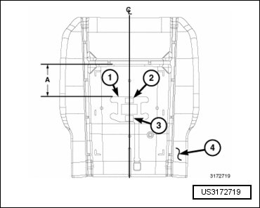- Measure and mark a transverse line (Distance A) on the top of the seat cushion foam 119 millimeters (4.68 inches) rearward from the back edge of the front crimp channel in the seat cushion foam (4).