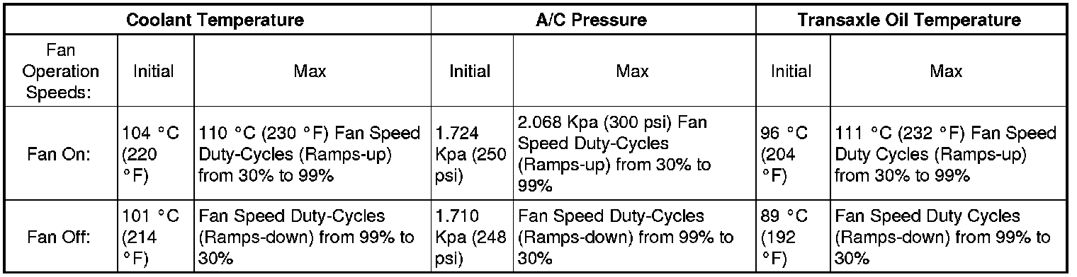 Cooling Fan Specifications