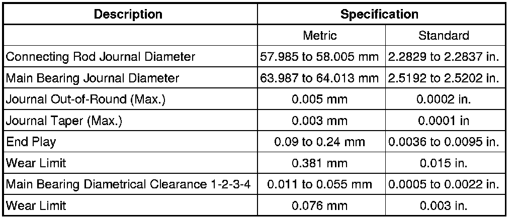 Crankshaft and Bearing Specifications
