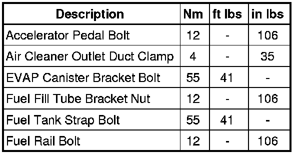 Fuel Supply - Fastener Tightening Specifications