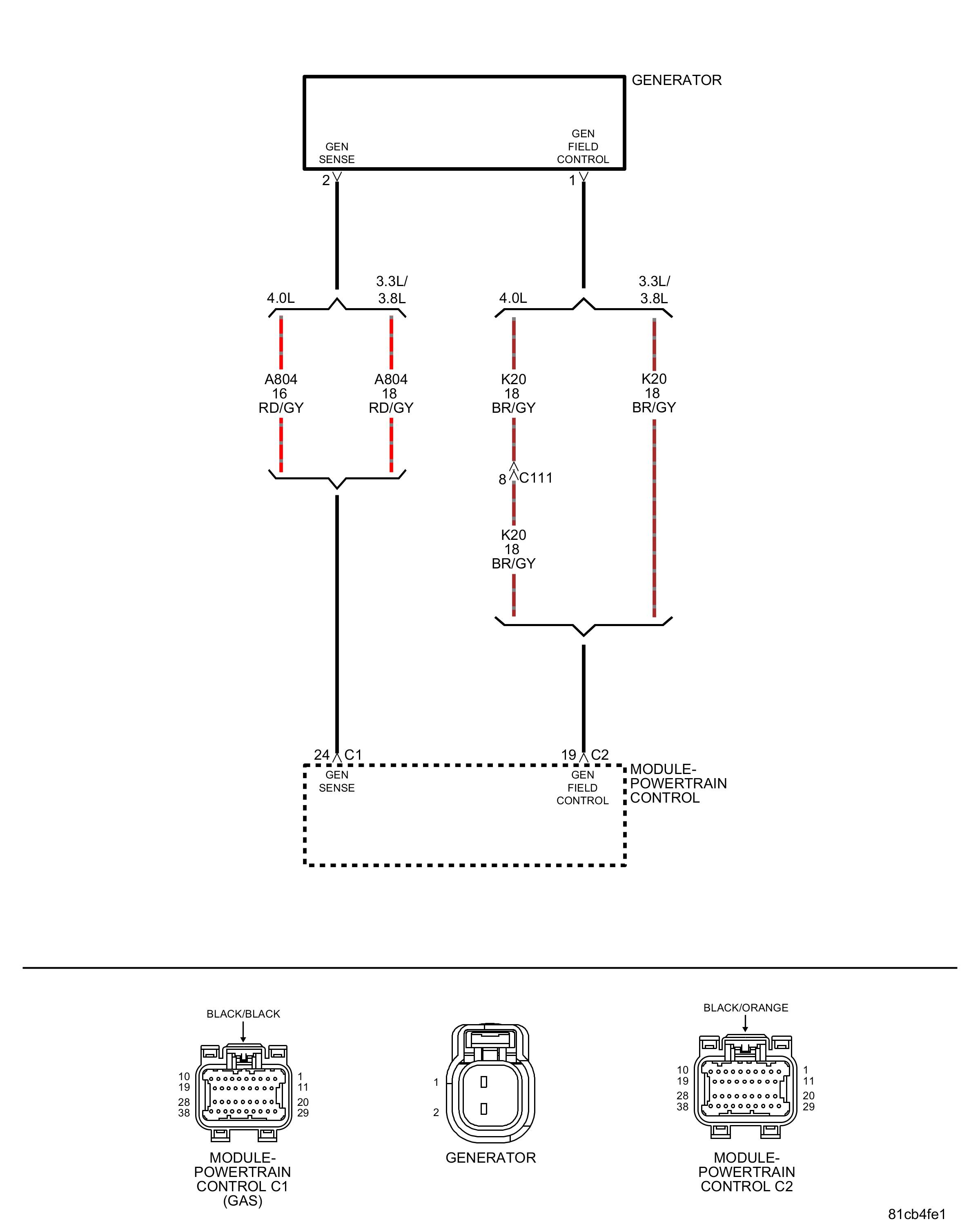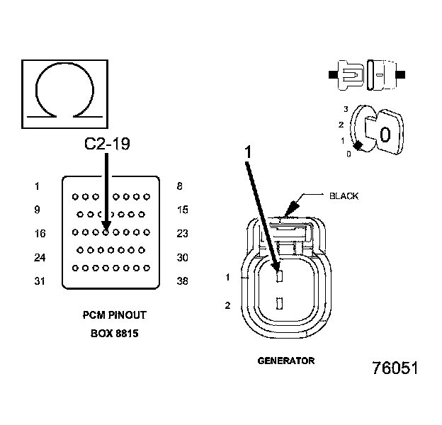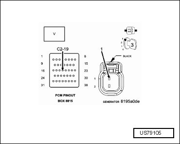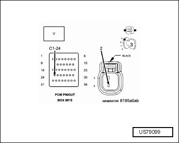 • Using the wiring diagram/schematic as a guide, inspect the wiring and connectors between the generator and the PCM.