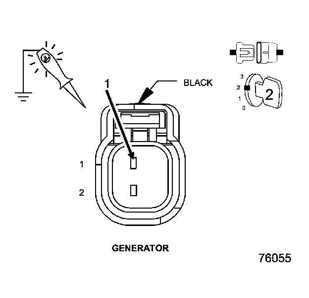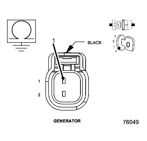 • Measure the resistance between ground and the generator field control circuit in the generator harness connector.