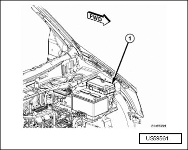 The starter relay is located in the power distribution center (1). The PDC is located in the engine compartment near the left inner fender. Refer to the label on the PDC cover for relay location.