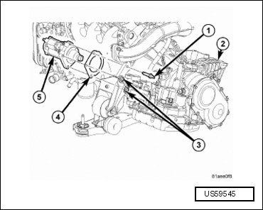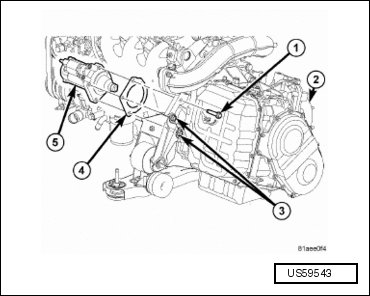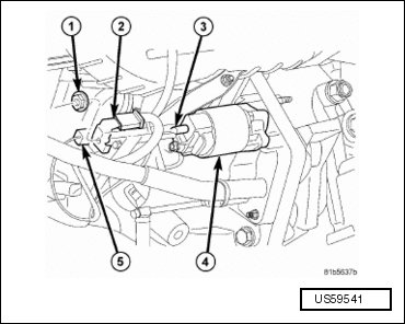 - Rotate the starter (5) in order to allow removal from vehicle.